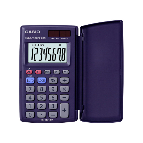 Segmentos de Utilização: Escolar, Contabilistas, Escritórios e Tarefas Administrativas. Conversão cambial (1 taxa ou conversão para Euro): Tipo portátil Número de dígitos: 8 dígitos Visor de cristais líquidos: Ecrã grande Sinais de comando de função Separadores de milhares de 3 dígitos Teclas de plástico Teclado com memória Memória independente Energia solar e pilha Tamanho (P × L × A): 104 × 127 × 7.5 mm Tamanho quando fechada (P × L × A): 104 x 62,5 x 10 mm Peso: 45 g Cálculo básico: Cálculo básico Percentagem normal (%) Percentagem da margem de lucro Cálculo avançado: Conversão cambial (1 taxa ou conversão para Euro)